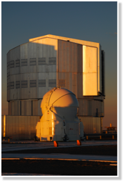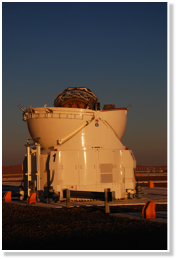 The ATs are very unusual telescopes. In their ultra-compact protective domes, these 33-ton machines carry their own electronics, ventilation, hydraulics and cooling systems. Each AT has a transporter that lifts the telescope and moves it from one position to the other. Almost like a snail, it moves around with its own housing.