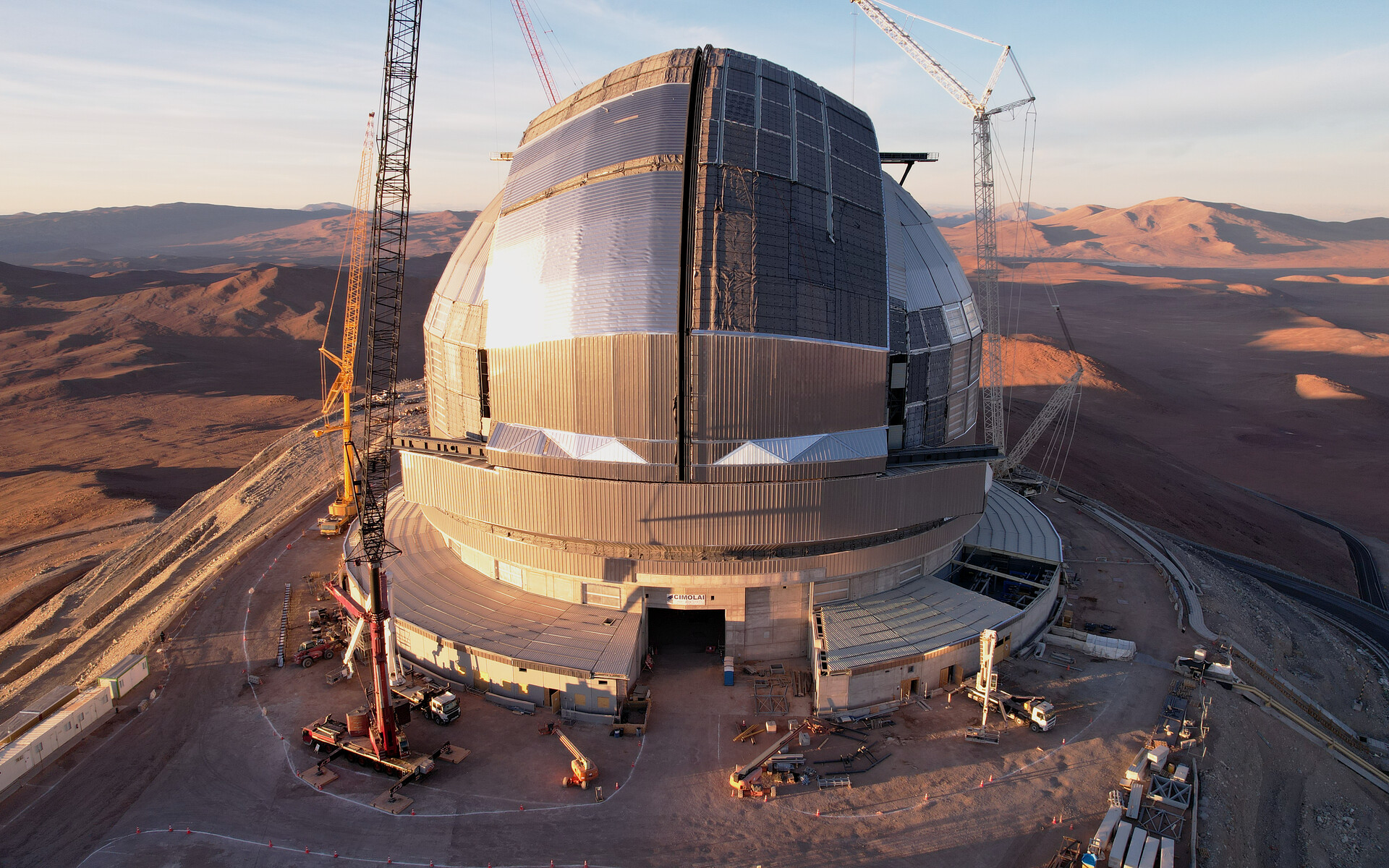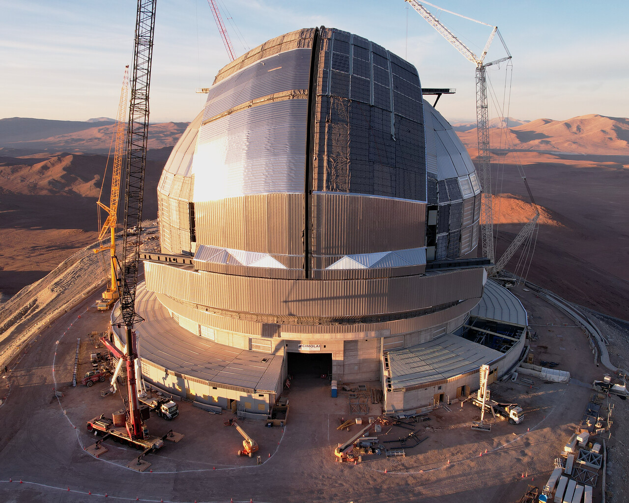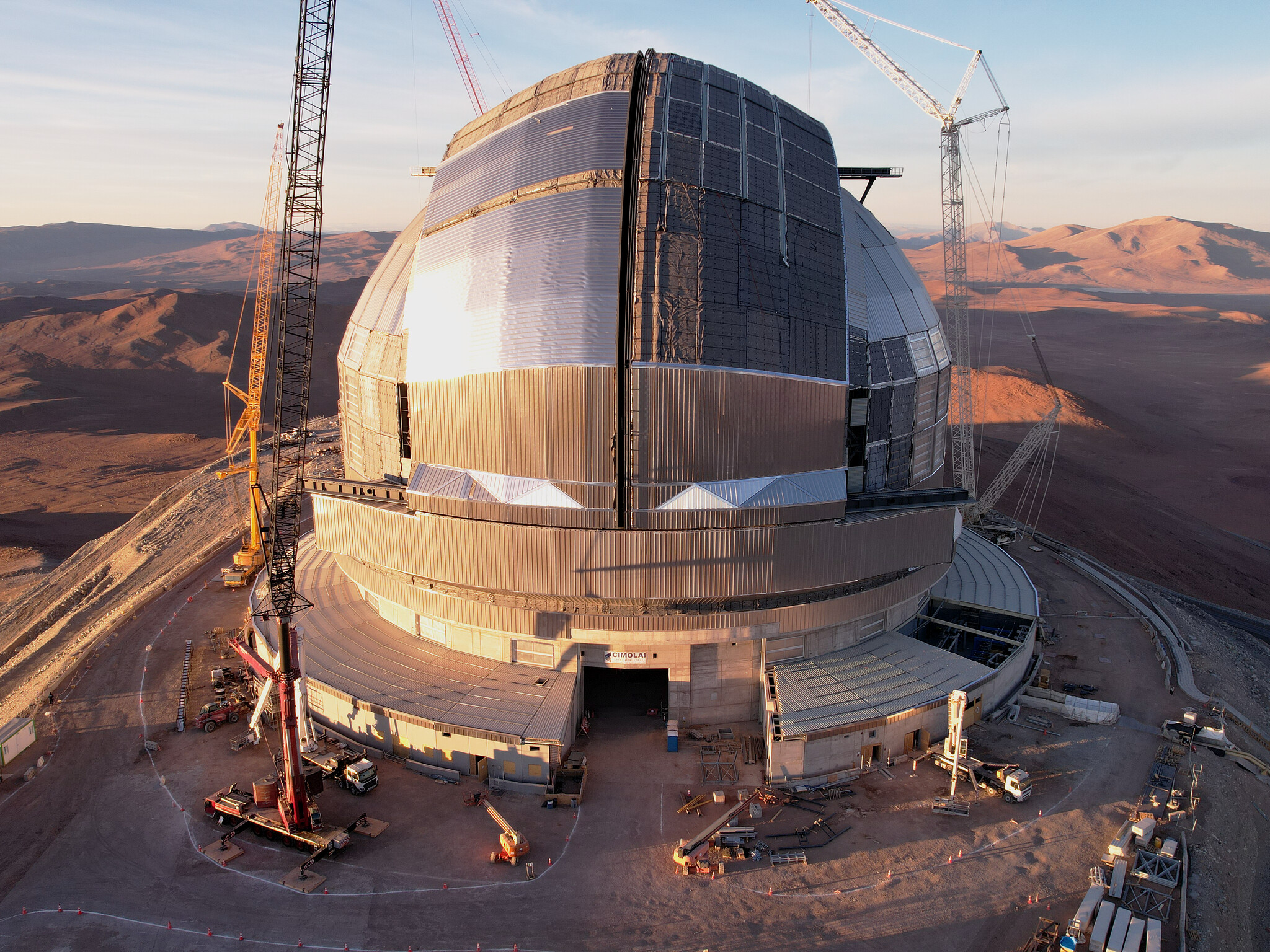 Still under construction but looking almost complete: the dome of the Extremely Large Telescope (ELT). The telescope has earned this name because its main mirror will have a diameter of 39 metres, almost four times greater than the dimensions of the current largest telescope mirrors. The main mirror, along with the other telescope mirrors and optical instruments, are all housed inside the gigantic dome, measuring 93 metres wide and 80 metres tall. This massive machine is one of the largest projects ever undertaken in astronomy, with its first light planned for the end of this decade.