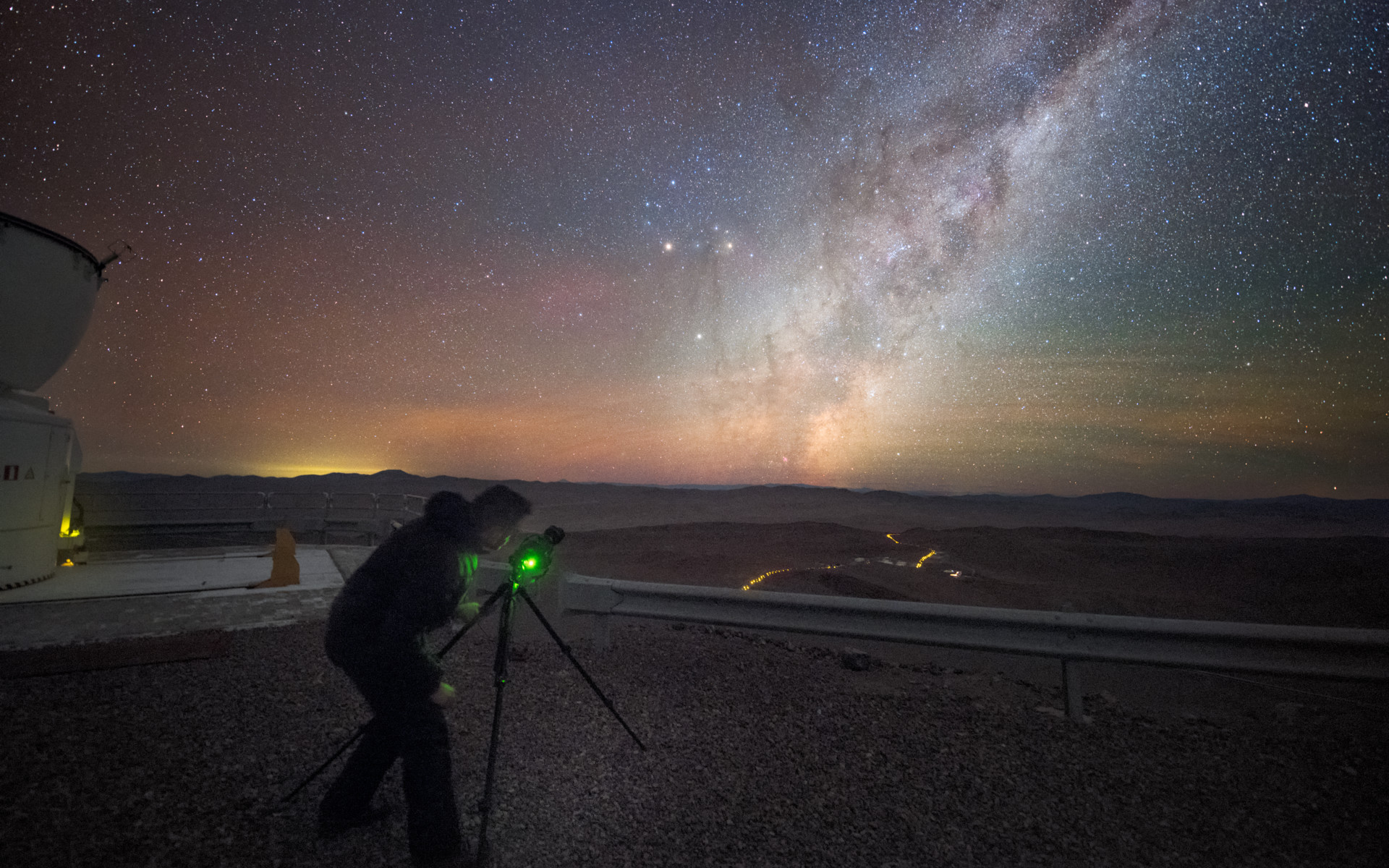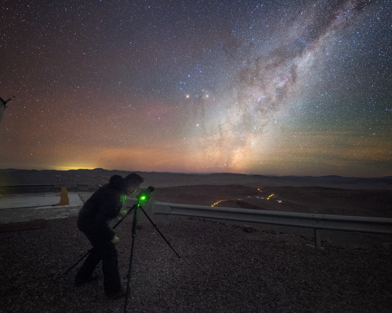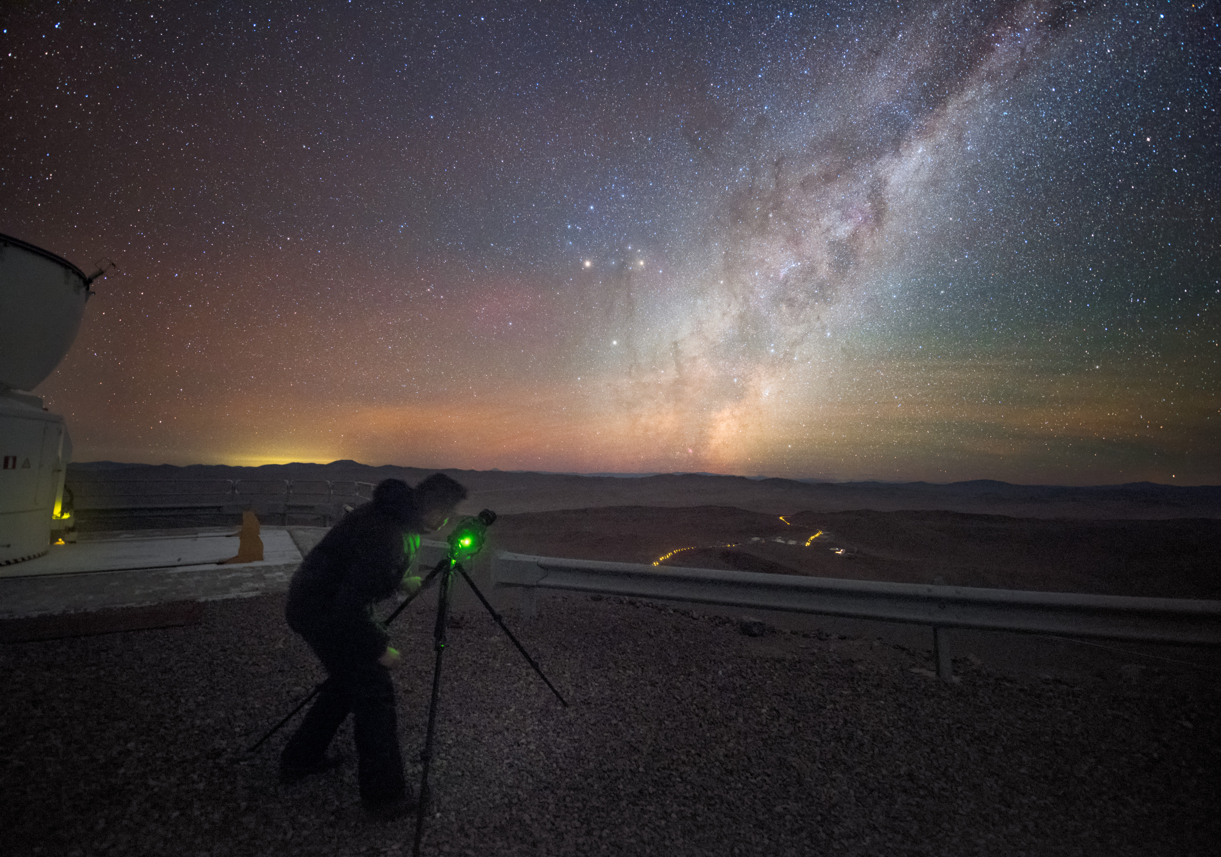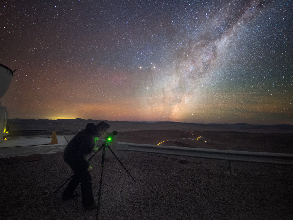 With light pollution and cloud cover rarely issues at ESO's Paranal Observatory, the delights of our Universe are never more visible. Here, one of ESO's Photo Ambassadors, Babak Tafreshi, sets up a view on our home galaxy, the Milky Way.