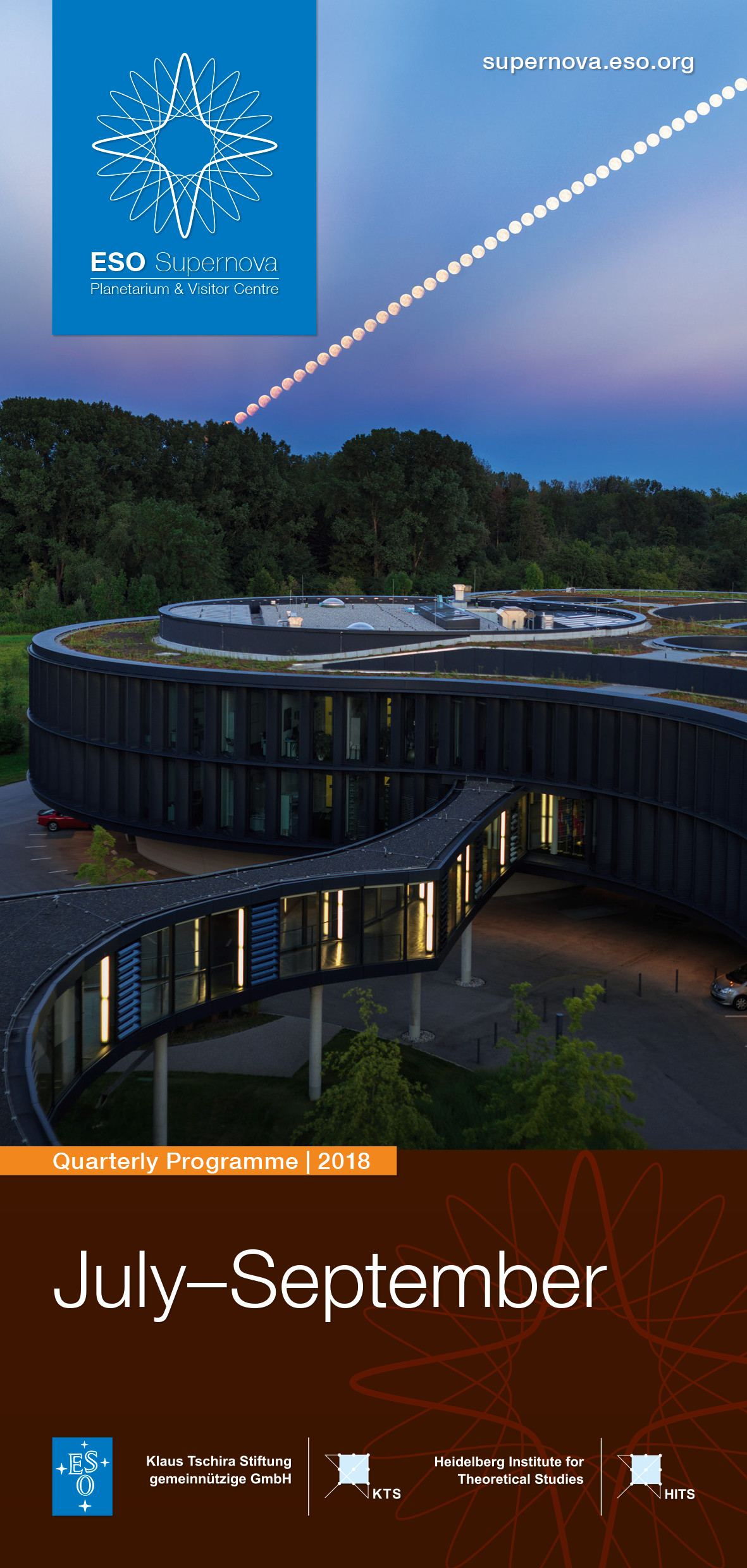 Featuring the latest ESO Supernova activities, the programme contains all you need to know about our planetarium shows, guided tours and educational workshops for the period July–September. It also features special public events such as science talks, concerts and much more.