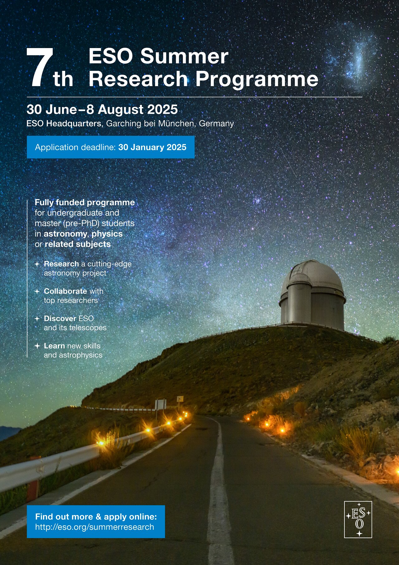 This website uses Matomo (formerly Piwik), an open source software which enables the statistical analysis of website visits. Matomo uses cookies (text files) which are saved on your computer and which allow us to analyze how you use our website. The website user information generated by the cookies will only be saved on the servers of our IT Department. We use this information to analyze www.eso.org visits and to prepare reports on website activities. These data will not be disclosed to third parties.