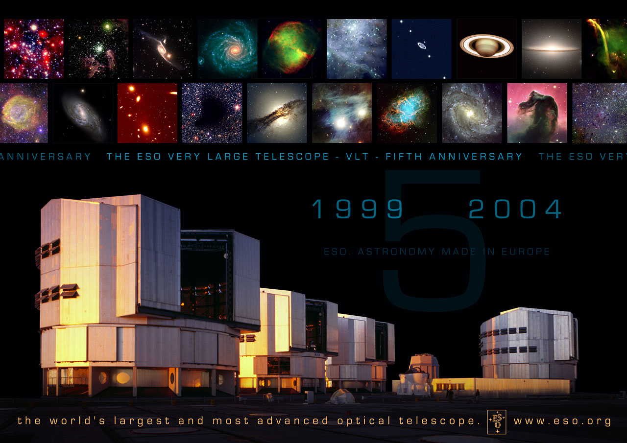 On the occasion of the Five Years anniversary of ESO's Very Large Telescope, ESO has produced an A1 poster highlighting the best images taken by this world leading facilities. This collection of images as well as other more recent ones is also available individually for download from the ESO Public Image Archive.