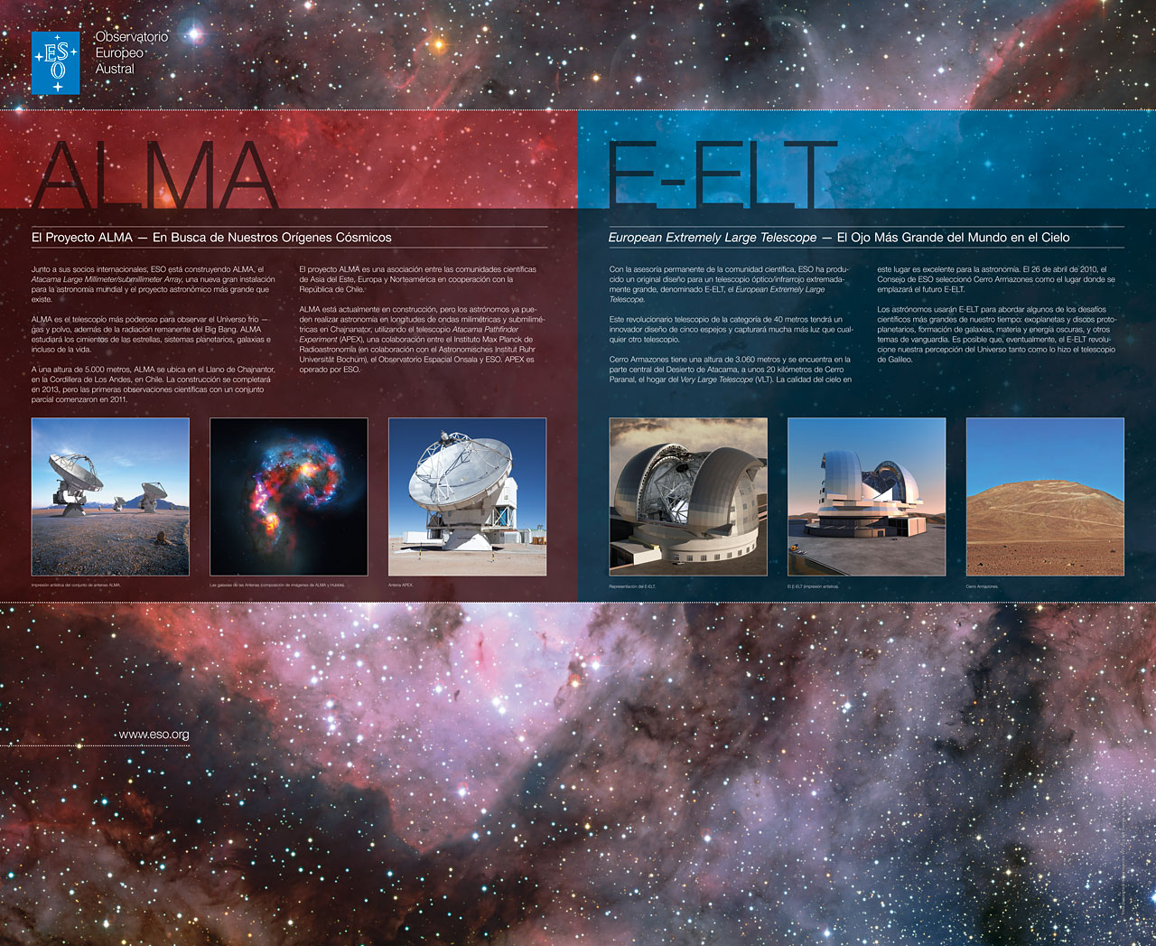 Panel in Spanish for the Vitacura Reception, with information about ALMA and E-ELT.